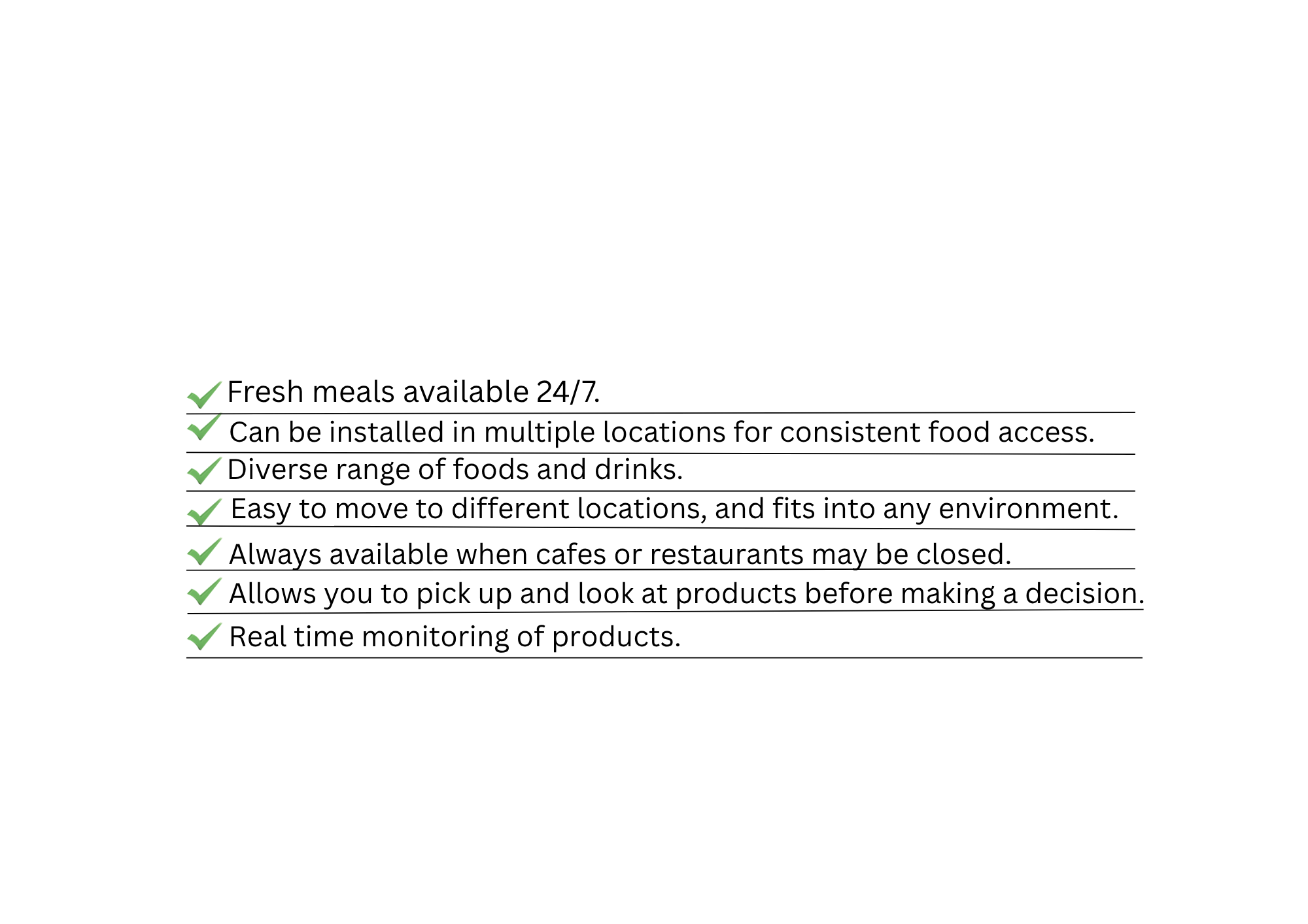 Hot meal vending brings the future of dining to your fingertips. With the touch of a button, customers can enjoy freshly prepared, restaurant-quality meals!